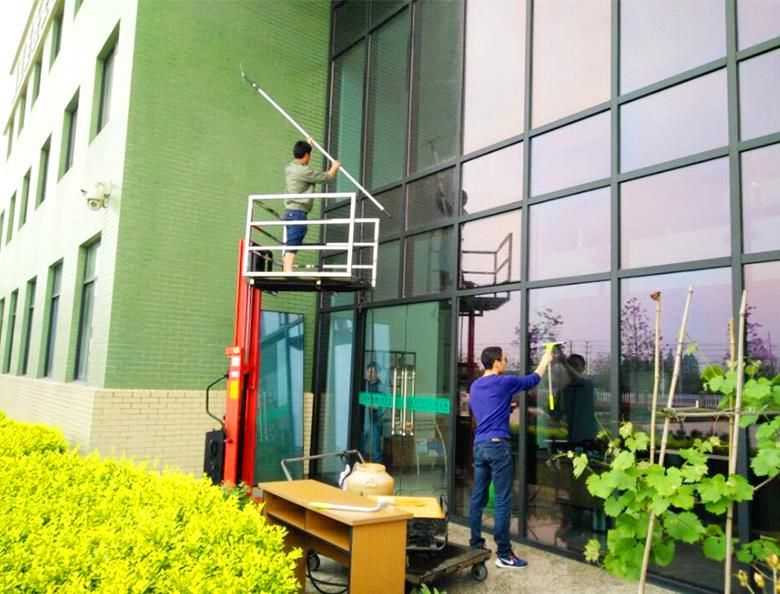 上圖為公司黨員在清洗辦公樓玻璃