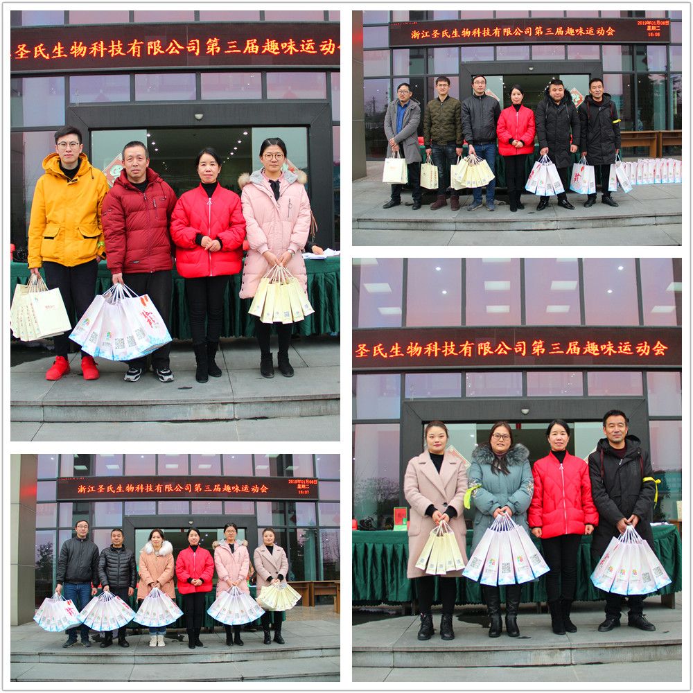 為豐富圣氏生物職工業(yè)余文化生活,激發(fā)職工參與體育鍛煉的積極性,增強(qiáng)員工的內(nèi)部凝聚力,增進(jìn)員工之間的溝通、交流和團(tuán)隊(duì)協(xié)作意識(shí)。2019年1月8日下午,在公司廣場(chǎng)上組織開展了浙江圣氏生物第三屆趣味運(yùn)動(dòng)會(huì),包括公司領(lǐng)導(dǎo)在內(nèi)的6支代表隊(duì)200余名員工參加了本次趣味運(yùn)動(dòng)會(huì)。