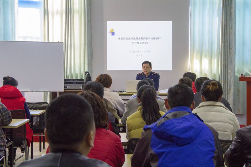 2019年3月13日,安吉縣市場(chǎng)監(jiān)督管理局組織生產(chǎn)科法規(guī)科領(lǐng)導(dǎo)到我公司開(kāi)展“食品安全法”進(jìn)企業(yè)活動(dòng),對(duì)我公司中層以上主管、經(jīng)理、領(lǐng)導(dǎo)及部分職工代表進(jìn)行培訓(xùn)。此次培訓(xùn)得到公司職工熱烈歡迎,取得良好的效果。