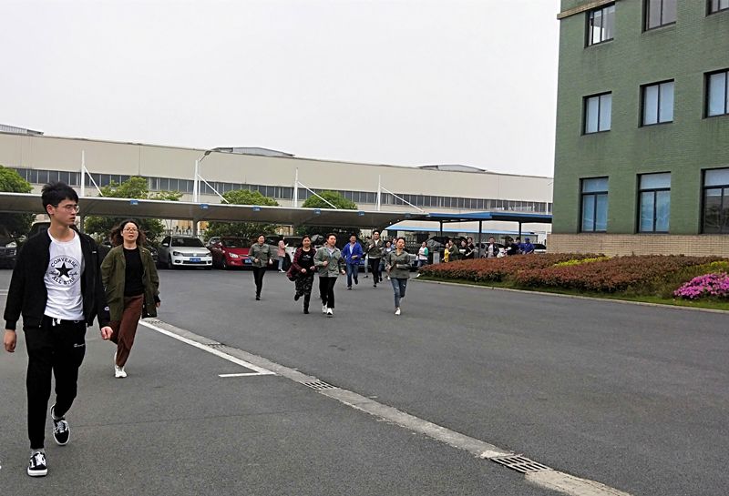 車(chē)間人員聽(tīng)到警報(bào)聲后,迅速有序地逃至疏散點(diǎn)。